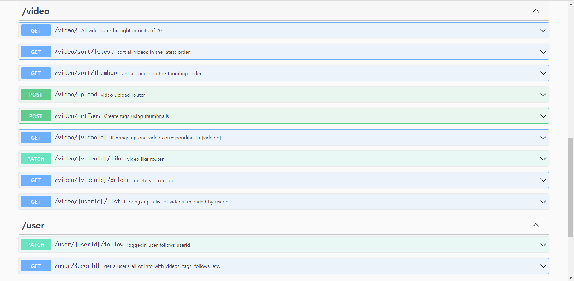 auth, user, video는 각 ts파일에 포함된 라우터에 대한 정보를 yaml파일에 기록했다고 보면 된다.